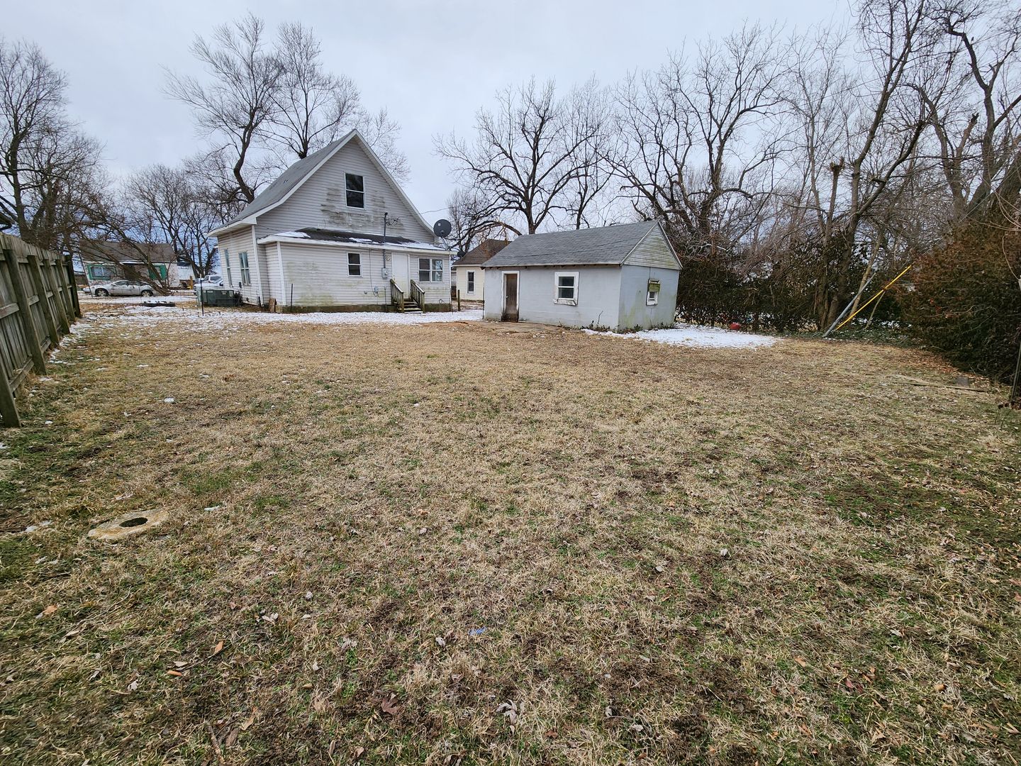 It has a covered front porch, great size living room, 2 spacious bedrooms, a bonus room, 1 bathroom, eat-in kitchen with newer appliances, huge partially fenced-in backyard, with a detached garage, new water heater, and more!!